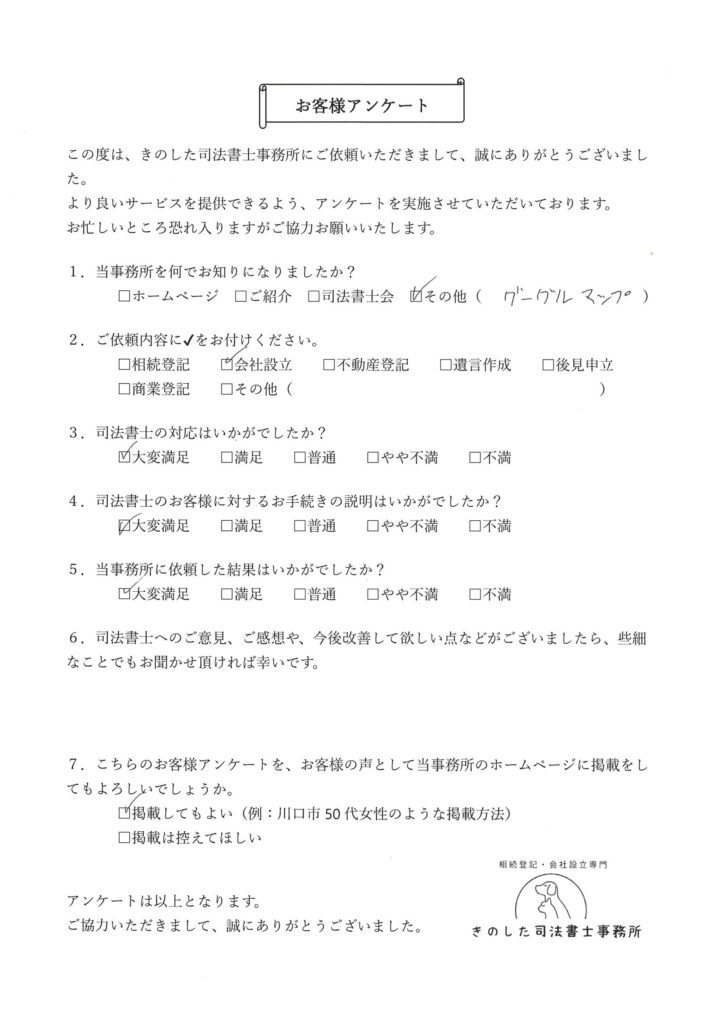 お客様の声10 会社設立(川口市の20代男性のお客様)